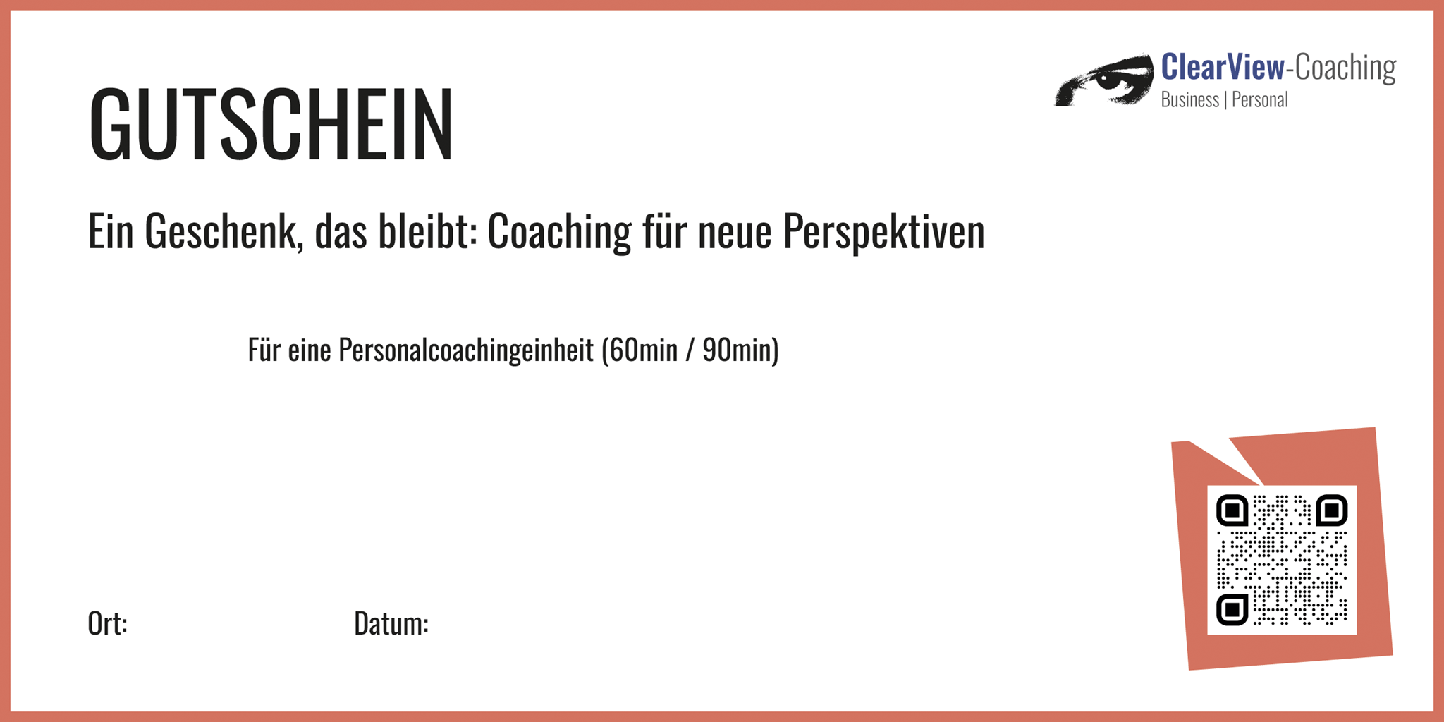 Ob für dich oder jemanden, der dir am Herzen liegt – ein Coaching-Gutschein sagt: Du bist wichtig. Du bist wertvoll. Du bist es wert, gehört, gesehen und gestärkt zu werden.